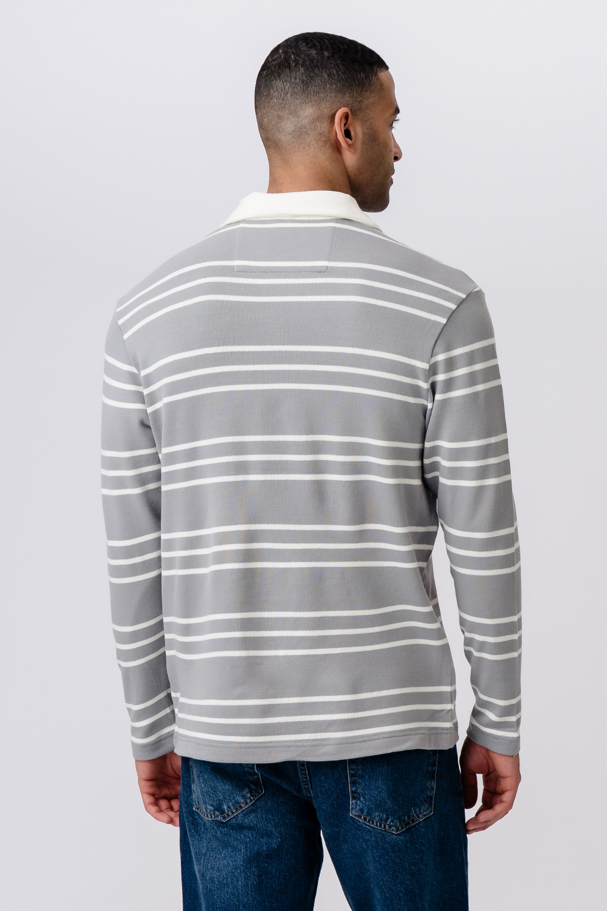 Polo rayé à manches longues - Gris