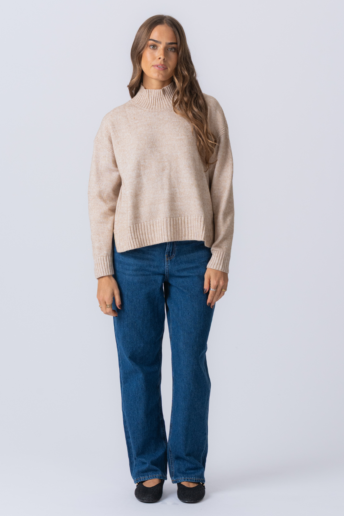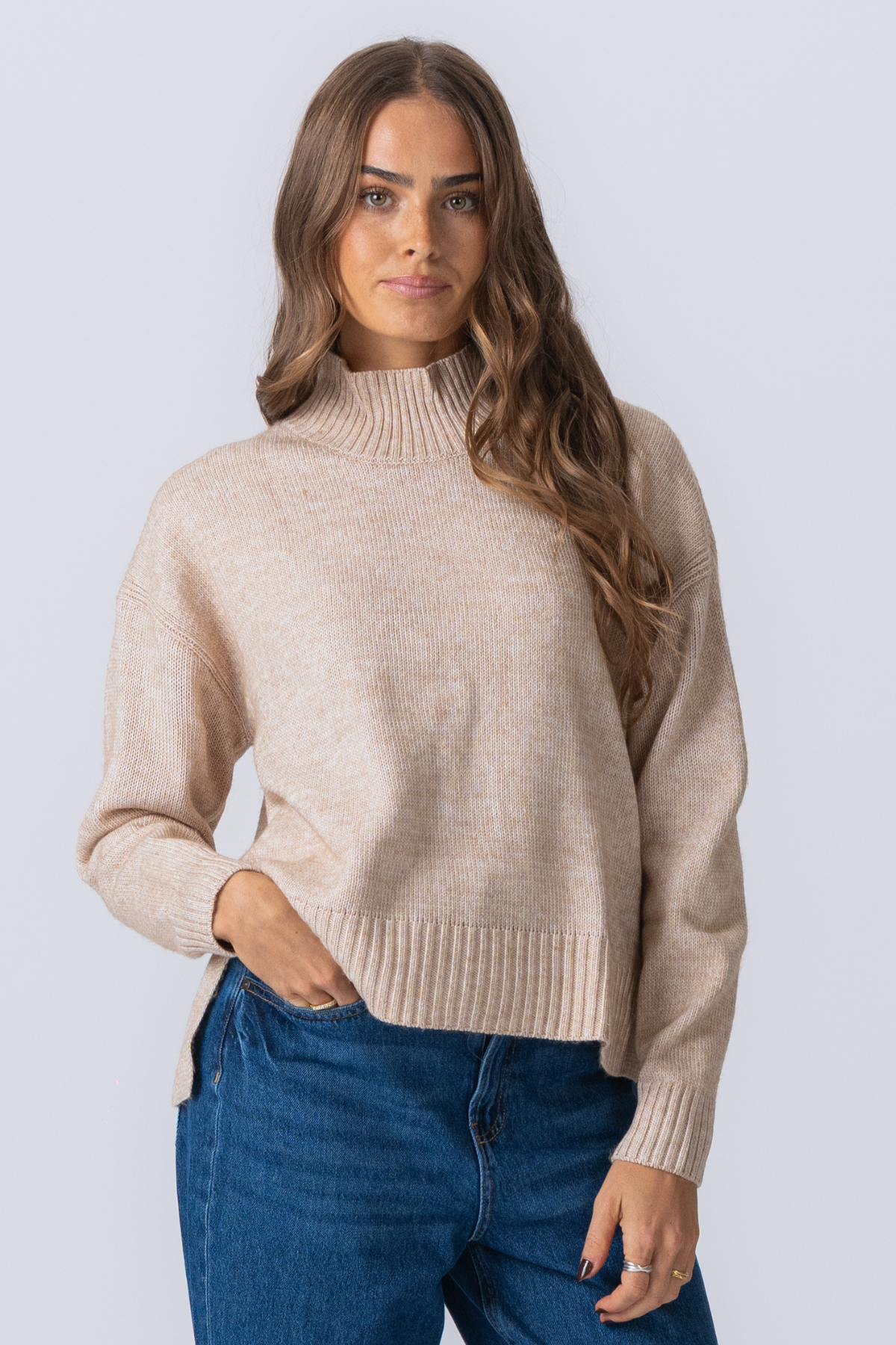 Embrasse l'élégance douillette avec TeeShoppen's Oversized Chandail à col roulé en tricot - Beige pour femmes