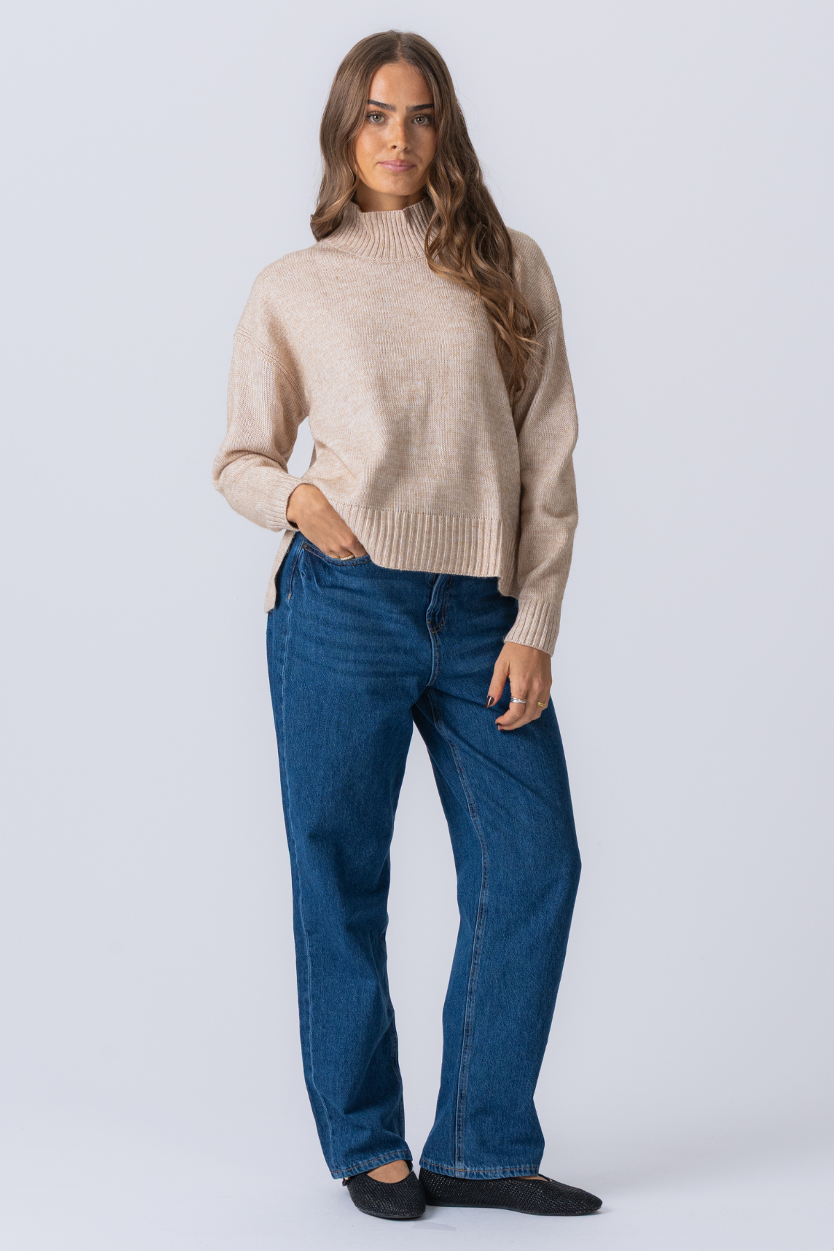 Embrasse l'élégance douillette avec TeeShoppen's Oversized Chandail à col roulé en tricot - Beige pour femmes