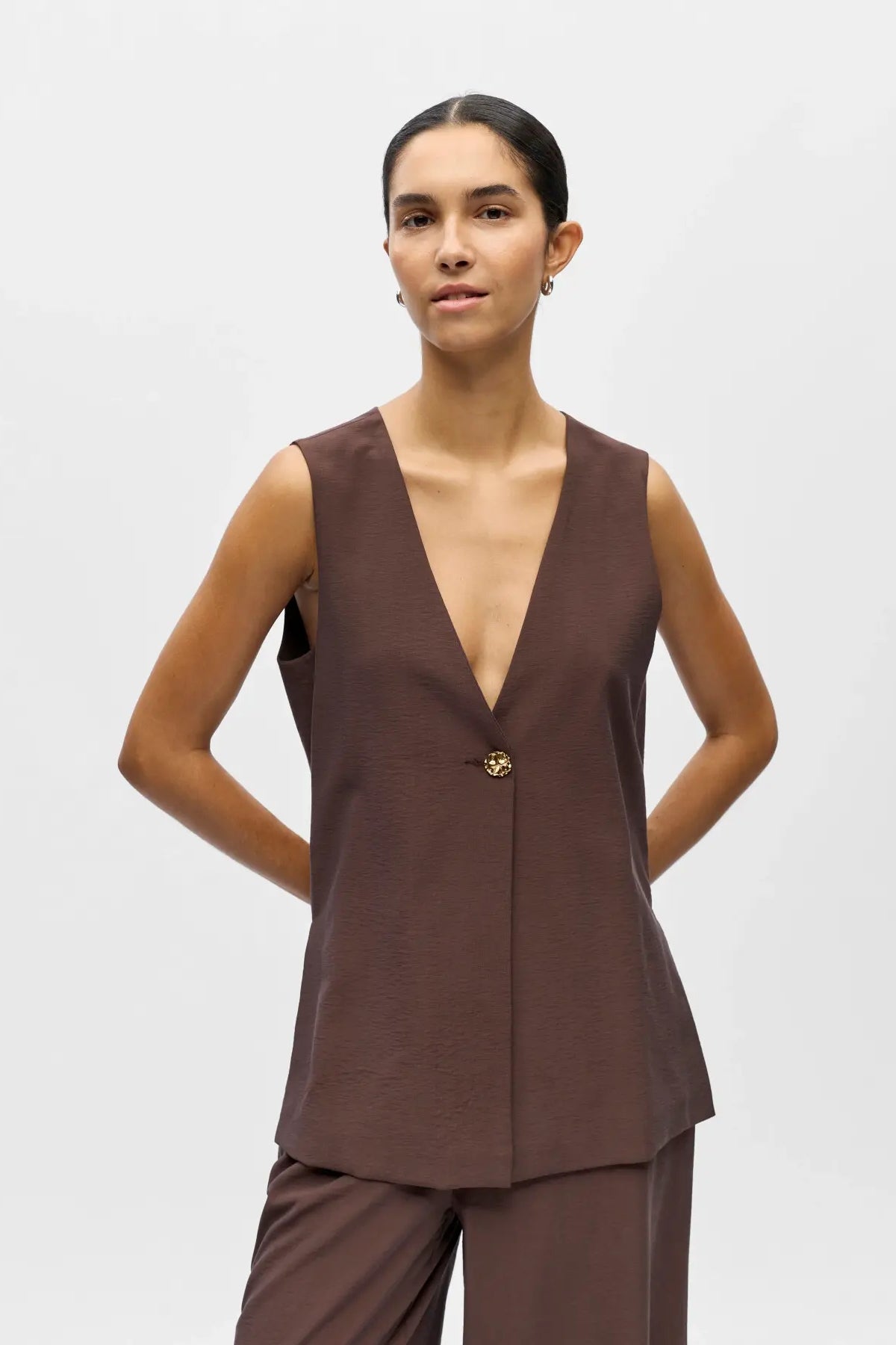 Elevate Your Style with the Isla Yui Waistcoat in Seal Brown