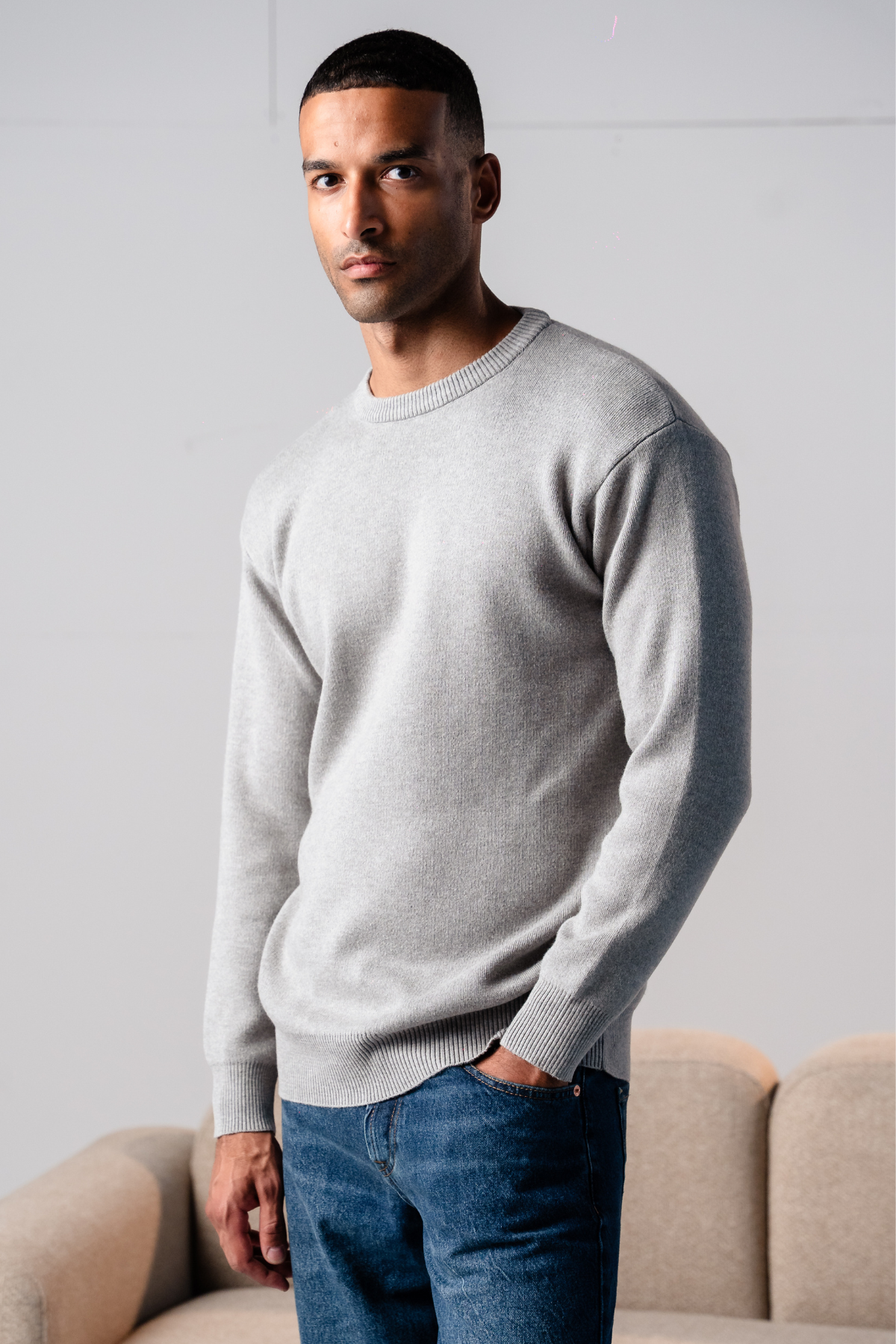 Elevate Your Everyday Style with the Essential Men's Light Gray Crewneck Knit Sweater by TeeShoppen.
