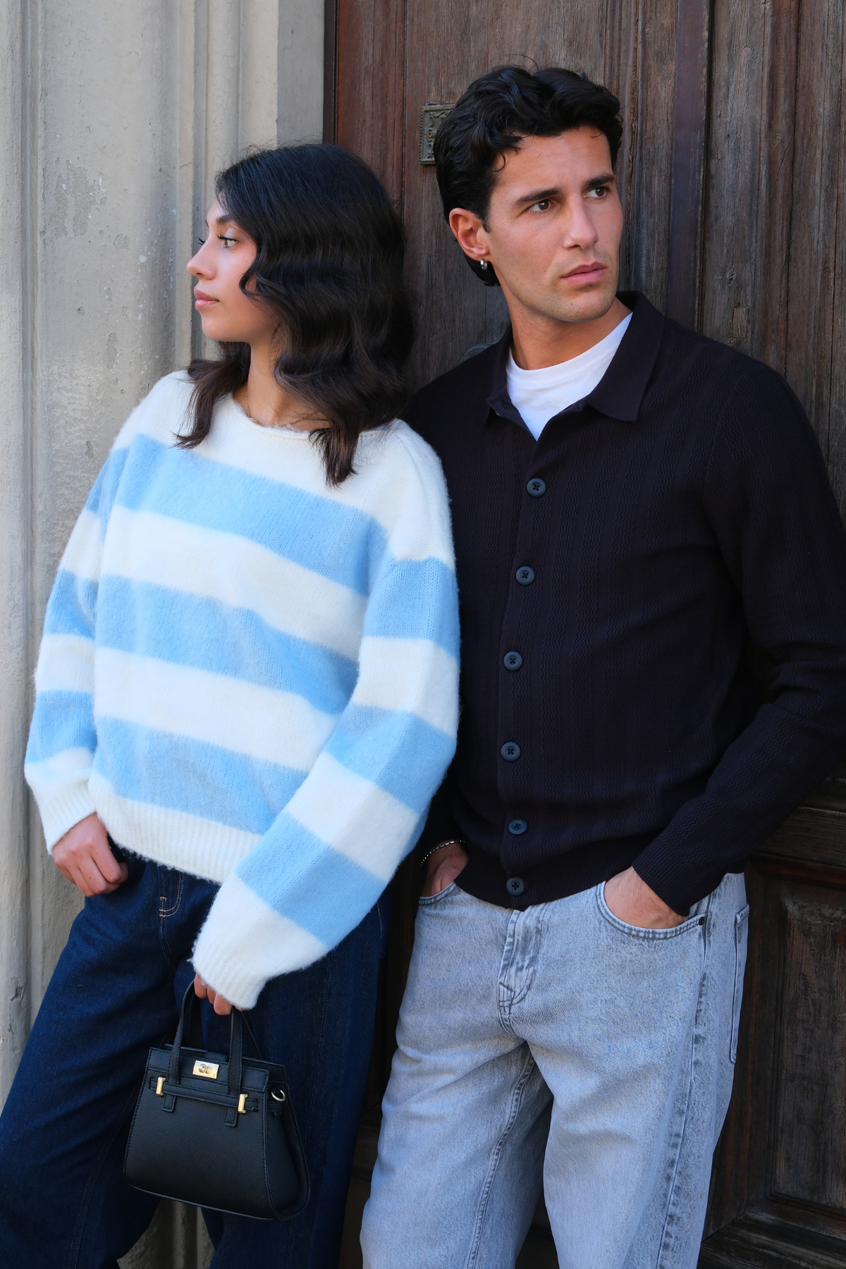 The deep, sophisticated Dark Navy color is your wardrobe's new cornerstone. More nuanced than black and more formal than grey, it pairs effortlessly with almost anything. For a sharp, business-casual look, layer it over one of our crisp Shirts. For a relaxed weekend, throw it on over a classic tee with your favorite jeans. This single cardigan transitions seamlessly from the office to a dinner date, making it the most hardworking piece in your collection.