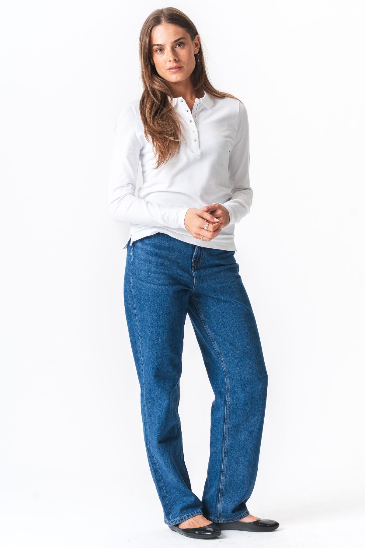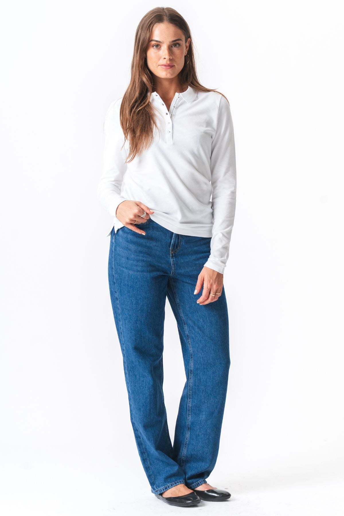 Versatility lies at the heart of our Polo Shirt - White for Women. Pair it with tailored pants and heels for a chic office look, or dress it down with jeans and sneakers for a casual weekend vibe. Layer it under a blazer for a polished ensemble or wear it solo for a relaxed yet refined aesthetic.