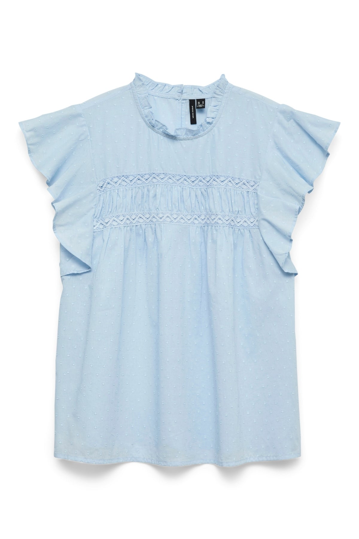 Experience the perfect blend of romantic charm and modern sophistication with the Trine Lace Top in Cashmere Blue. Designed by the renowned brand Vero Moda, this stunning piece is a testament to timeless fashion for the contemporary woman. The delicate lace work and the soothing light blue shade create an ethereal look that transitions seamlessly from morning meetings to evening gatherings. When you wear this top, you are not just putting on clothes; you are embracing a lifestyle of elegance and grace.