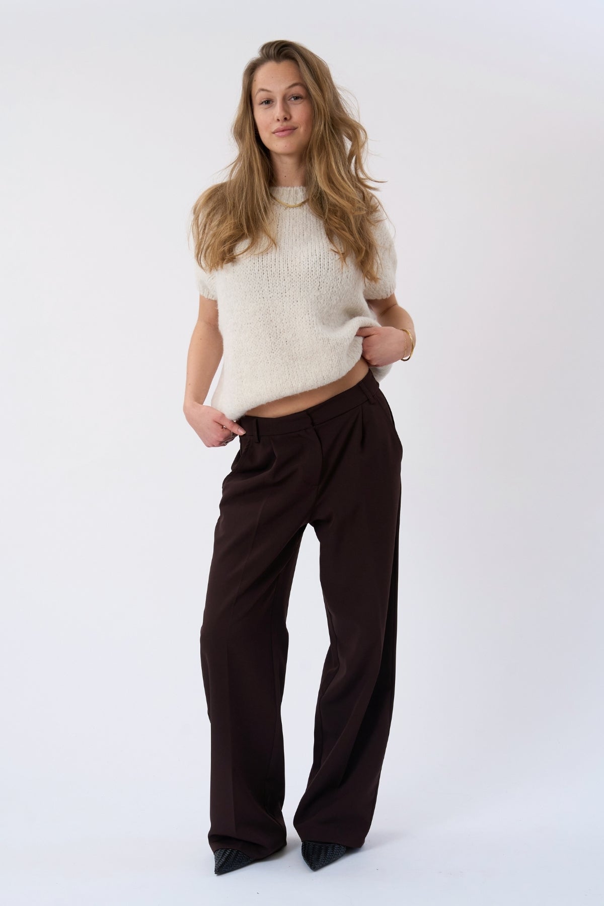 La teinte blanc cassé dégage un air d'élégance discrète, ce qui la rend incroyablement facile à assortir aux pièces existantes de votre garde-robe. La conception à manches courtes fait de ce tricot la pièce de superposition ultime. Portez-le seul pendant les journées venteuses du printemps ou superposez-le sous un blazer structuré lorsque la température baisse. Sa texture raffinée ajoute de la profondeur à n'importe quelle tenue, vous assurant un look raffiné, que vous vous rendiez à un brunch ou à une réunion d'affaires. Le motif tricoté subtil offre un look classique qui ne se démodera jamais.