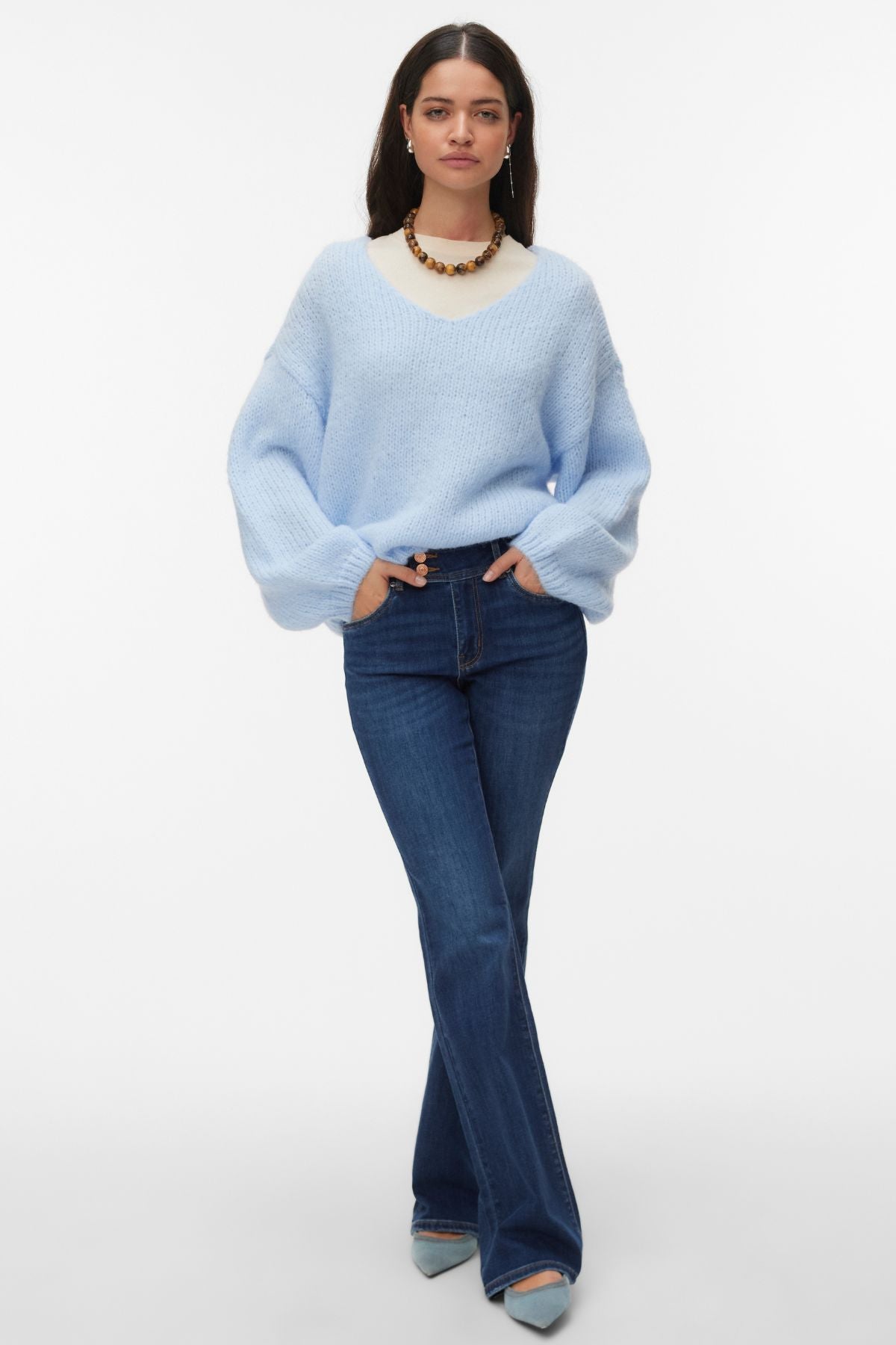 Pull à col en V Maybe 2wayBleu Cachemire