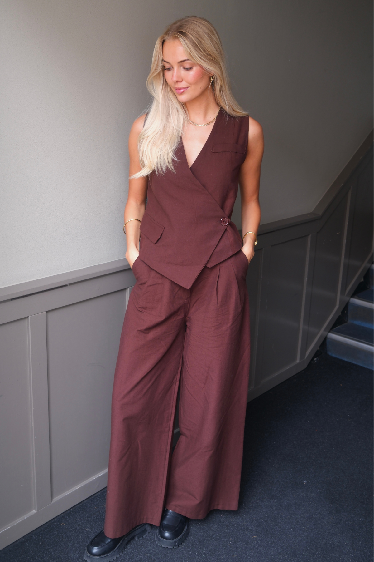 Rencontrer le gilet Melissa de TeeShoppen - La pièce de superposition ultime qui mélange magistralement le design classique et la sensibilité moderne. Conçu pour la femme exigeante qui valorise le style et la substance, ce gilet est plus qu'un simple accessoire; C'est une déclaration d'élégance sans effort. Dans un brun riche et polyvalent, le gilet Melissa promet d'être l'élément le plus travailleur et le plus aimé de votre collection, passant de manière transparente des paramètres professionnels aux sorties de week-end détendues.