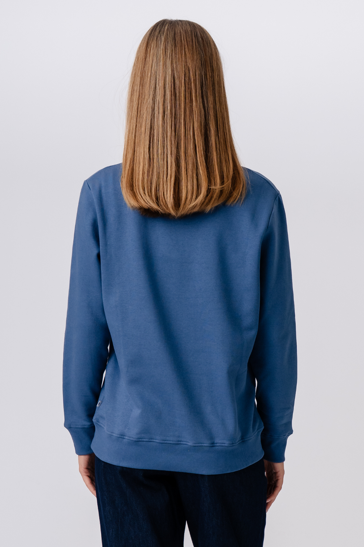 30 % polyester : L'ajout de polyester améliore la durabilité et la résilience. Il aide le sweat-shirt à conserver sa forme, à résister au froissement et à conserver sa couleur bleue vibrante lavage après lavage.